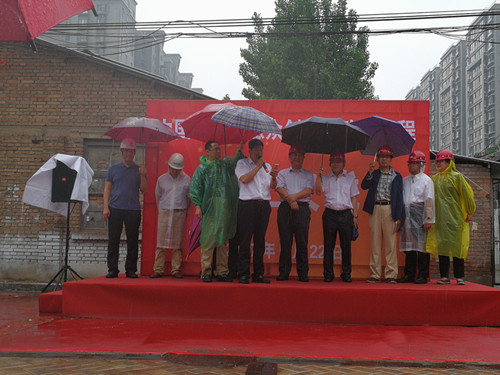 “好雨知時(shí)節(jié),當(dāng)春乃發(fā)生”,儀式當(dāng)天恰逢喜雨。中國(guó)鋼研副總經(jīng)理李波,鋼研國(guó)貿(mào)高宏斌總經(jīng)理,北京鋼研新冶工程設(shè)計(jì)有限公司郭伏安總監(jiān),中京建設(shè)集團(tuán)杜巨樂總裁,中京建設(shè)集團(tuán)北京分公司陳建明總經(jīng)理出席了項(xiàng)目開工儀式。