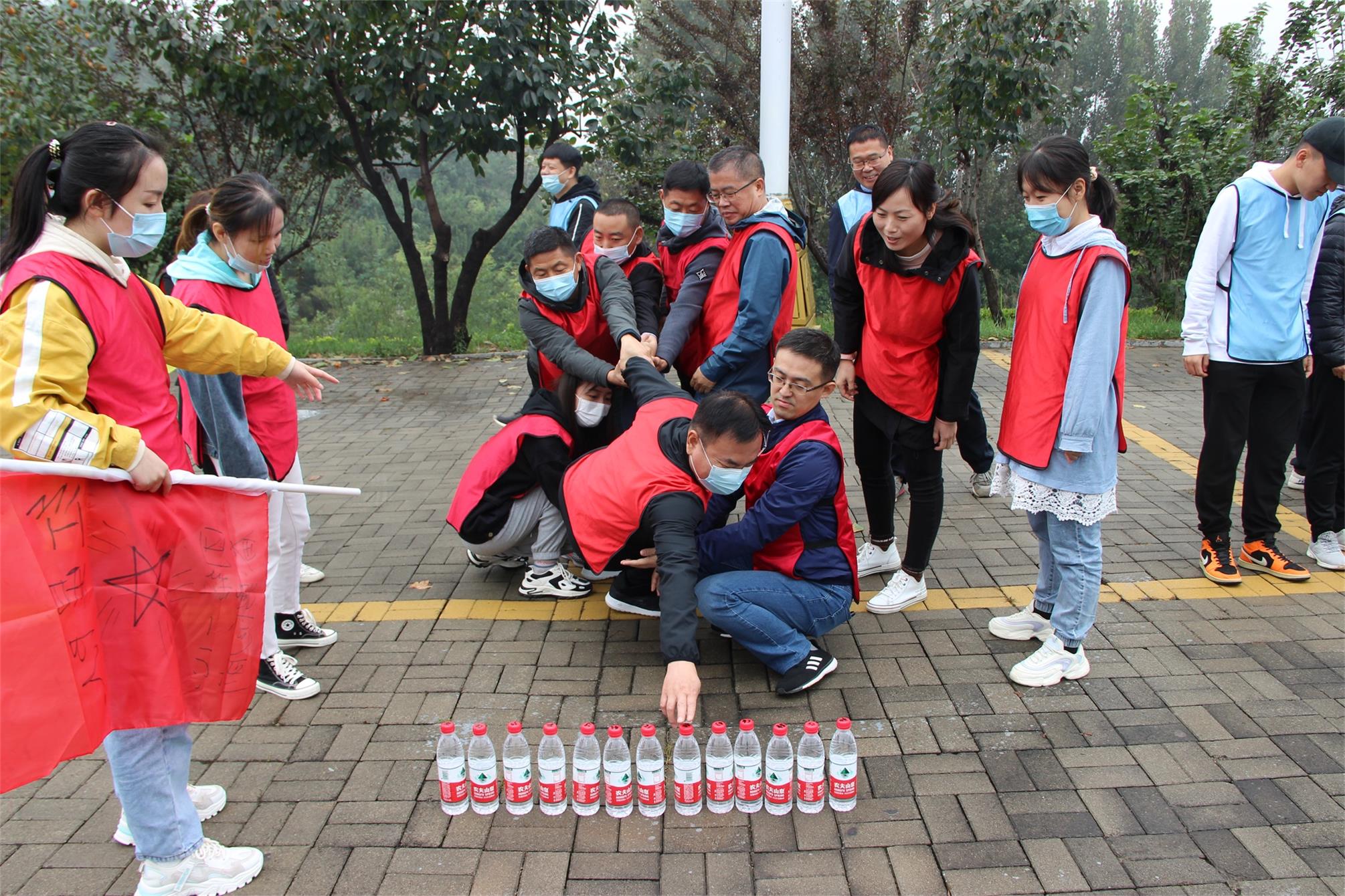 取水游戲,這同樣也是一個強調(diào)團隊協(xié)作的游戲,要求團隊成員在規(guī)定時間內(nèi),站在劃線區(qū)域外想辦法每個人取回定量的水,各隊紛紛想辦法開始嘗試,看似簡單的游戲,但是在嘗試過程中并不是那么順利,再取水的過程中一個人根本無法拿到水,每個小隊立即展現(xiàn)出團隊協(xié)作能力,很快就已經(jīng)掌握了方式方法,最終在比賽中超出了所有人的預期,大家都順利完成。雖然在嘗試過程中頻頻失敗,是大家沒有遇到困難就選擇放棄,一起努力,同一條心取得了最后的勝利,這個游戲讓我們所有人感受到團隊的力量是真的很強大!