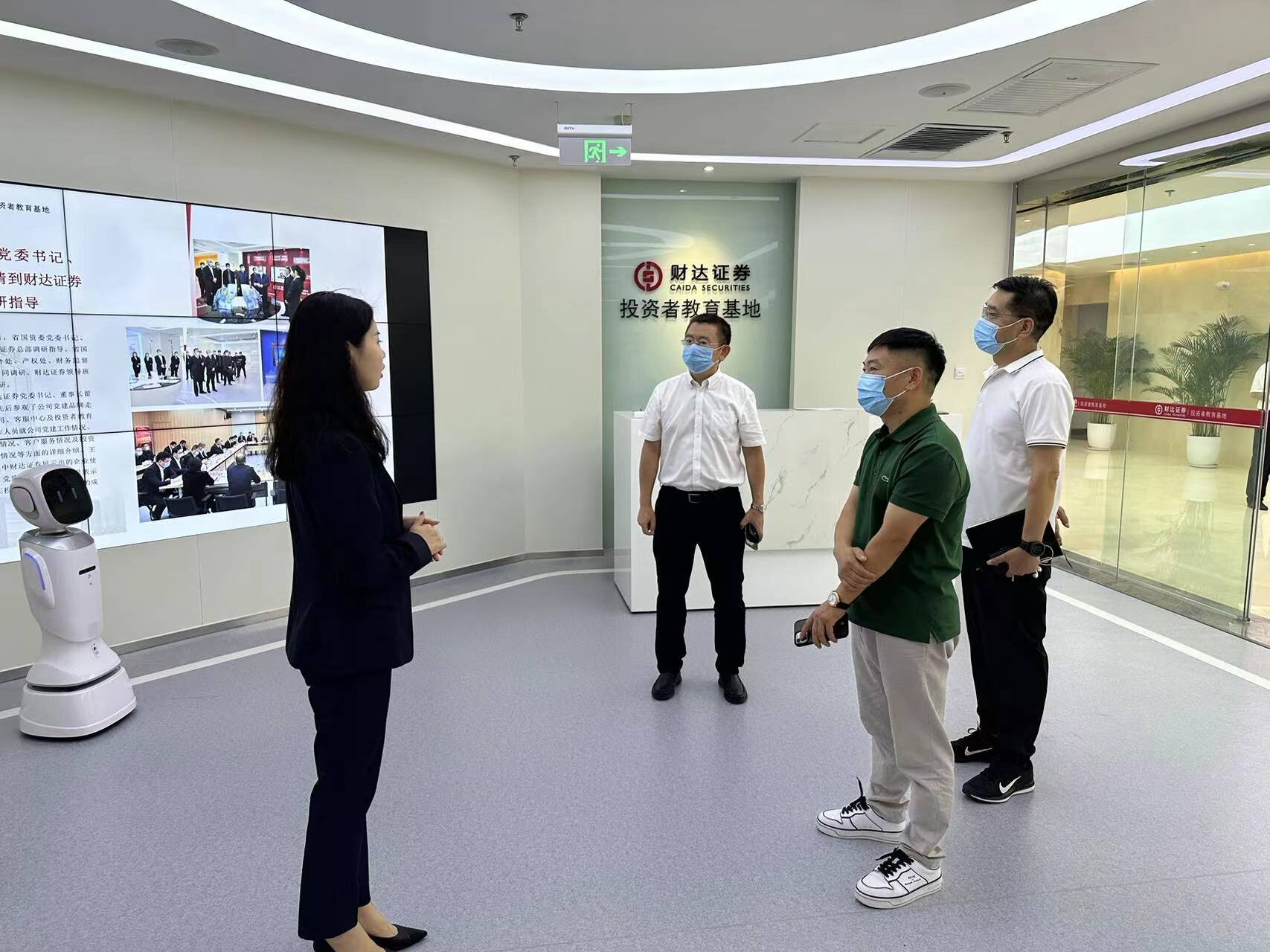 在財(cái)達(dá)證券公司董事長(zhǎng)秘書(shū)張磊的陪同引領(lǐng)下,王總一行參觀了財(cái)達(dá)證券投教基地,了解了投教基地的建設(shè)背景、證券知識(shí)及相關(guān)法律法規(guī)、培養(yǎng)理性投資理念、非法證券活動(dòng)等知識(shí)。