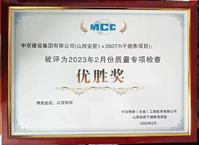 中京建設(shè)集團(tuán)獲山西安昆干熄焦項目2023年度2月份質(zhì)量專項檢查優(yōu)勝獎