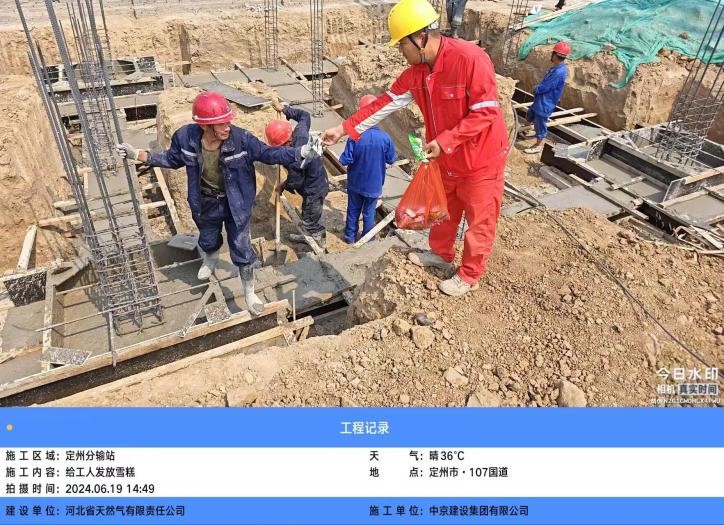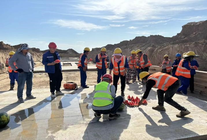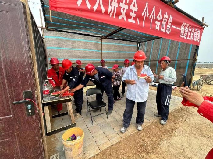 在日常生產(chǎn)過程中,項(xiàng)目部為高溫下堅(jiān)守崗位的作業(yè)人員送上藿香正氣水、西瓜、綠豆湯等防暑降溫用品,加強(qiáng)對(duì)施工人員在高溫環(huán)境下作業(yè)的安全交底,對(duì)施工人員的自身防護(hù)、防暑常識(shí)等進(jìn)行培訓(xùn),助力奮戰(zhàn)在高溫一線的作業(yè)人員平安度夏、清涼度夏。